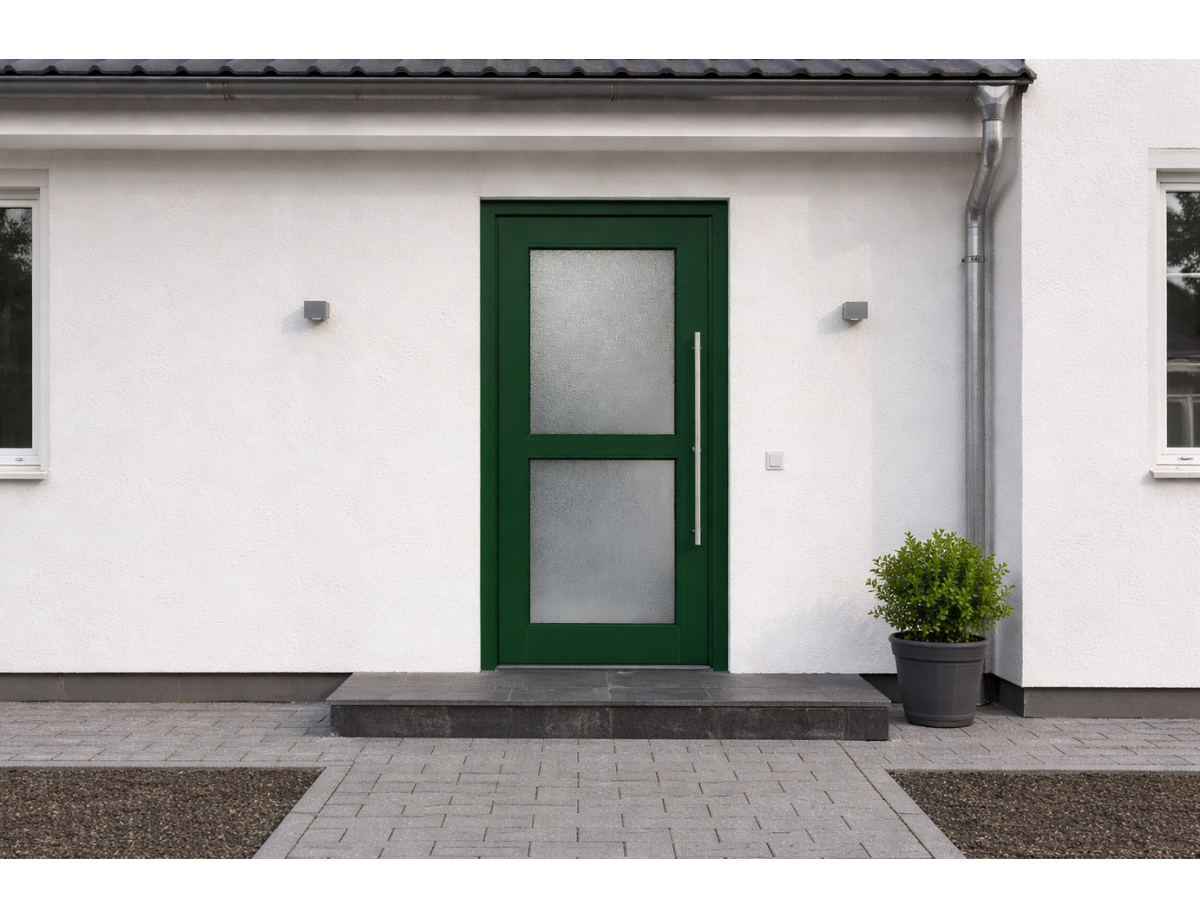 Diese elegante Haustür aus Holz besticht durch ihre schlichte Formensprache und den senkrechten Glasausschnitt, der natürliches Licht in den Eingangsbereich bringt und eine moderne Optik erzeugt. Die Haustür ist konfigurierbar in Abmessungen, Holzart, Farbton und Verglasung – wählbar in Kiefer, Eiche oder Meranti, deckend lackiert oder lasiert, passend zu klassischer wie moderner Architektur. Holz überzeugt durch natürliche Ausstrahlung, Dämmwerte und Stabilität, die fachgerechte Verarbeitung sorgt für Formbeständigkeit und Wetterfestigkeit.