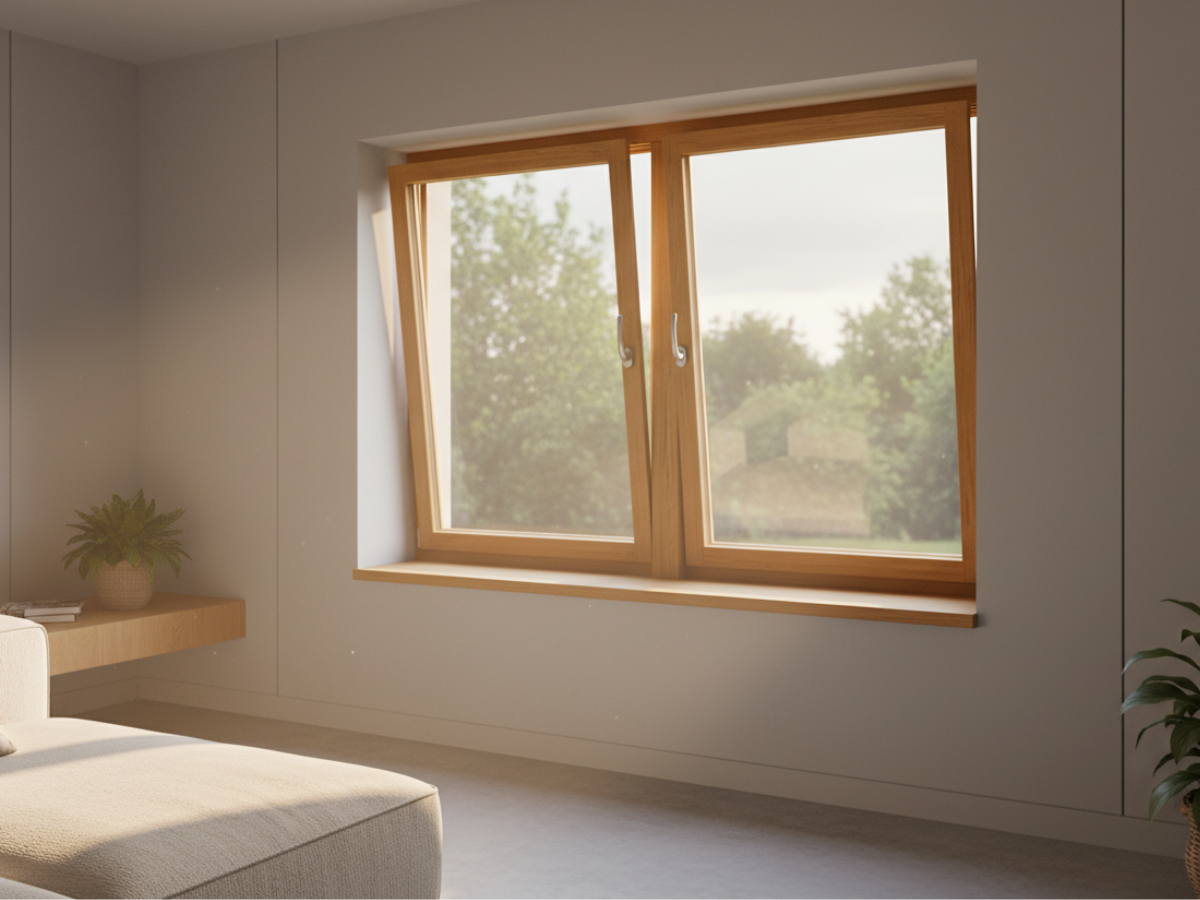 Gefertigt aus hochwertigem Kiefer-, Meranti- oder Eichenholz verbindet das Fenster funktionale Technik mit wohnlicher Optik. Es sorgt für natürliche Helligkeit, zuverlässige Wärmedämmung, Stabilität und ist passend für Alt- und Neubauten.